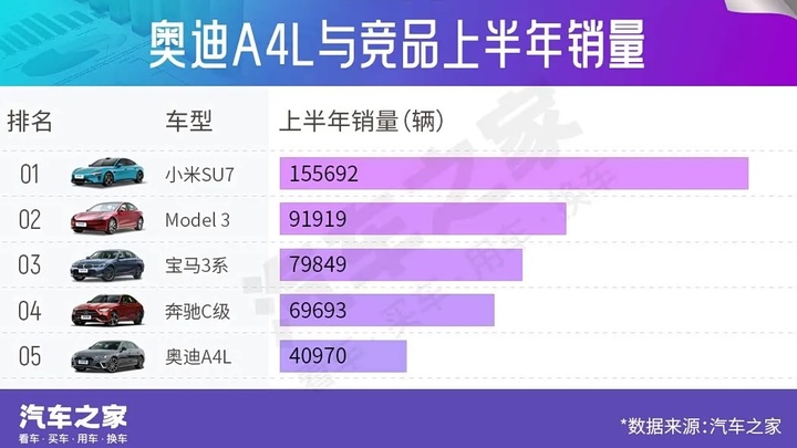 它不仅被老对手宝马 3 系和奔驰 C 级拉开了身位,也已经被小米 SU7 这样的新玩家远远甩开。